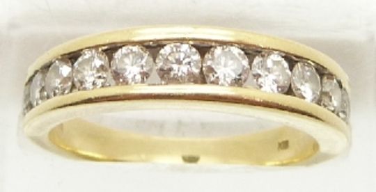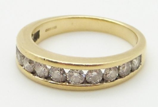 An 18ct gold half eternity ring set with twelve round brilliant cut diamonds, approximately 0.8ct total diamond weight, 5.3g, size N