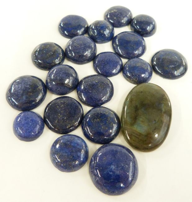 Eighteen lapis lazuli cabochons and a labradorite cabochon