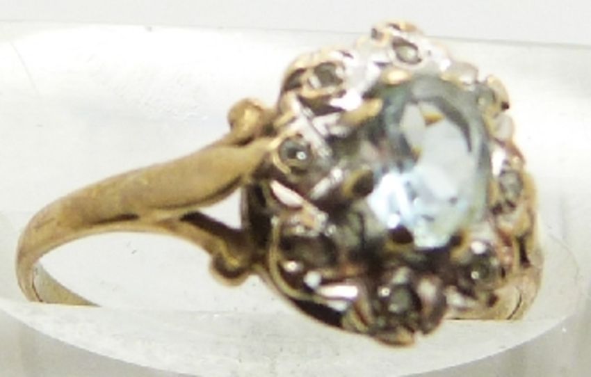 A 9ct gold ring set with an aquamarine and a 9ct gold ring set with an aquamarine and diamonds, 3.3g, size N