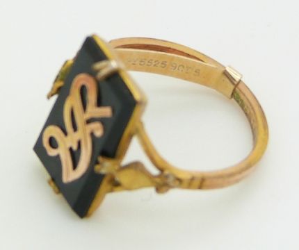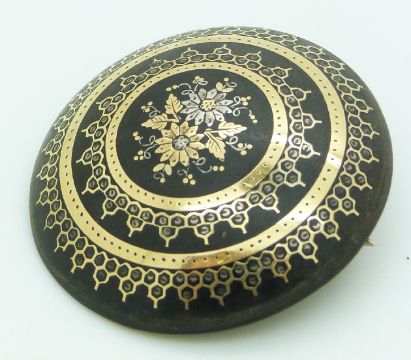 An inlaid Victorian brooch, a mourning brooch, and a Victorian brooch set with Bohemian rose cut garnets