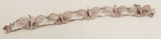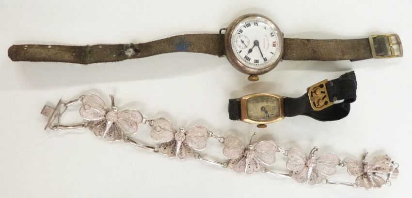 A silver Westend Watch Co 'keepsake' wristwatch, filigree butterfly bracelet and one other ladies wristwatch