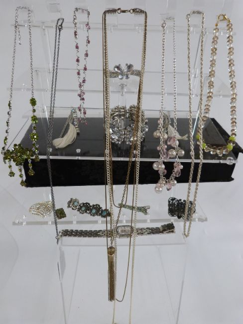 A collection of costume jewellery including faux pearls, necklaces, bracelets etc