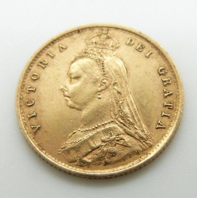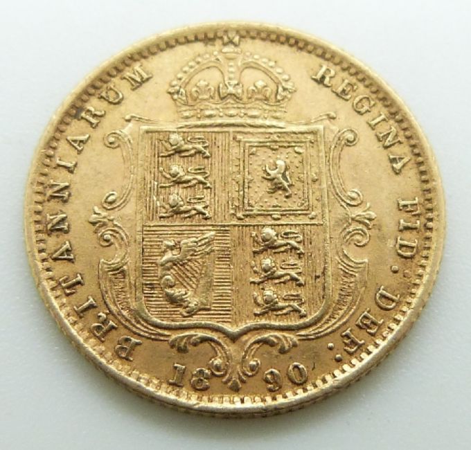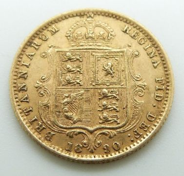 1890 Queen Victoria Jubilee head gold half sovereign, shield reverse