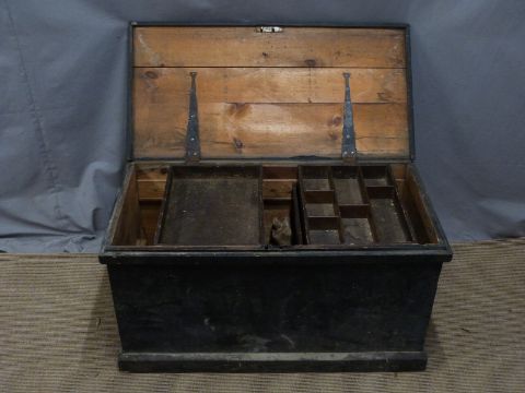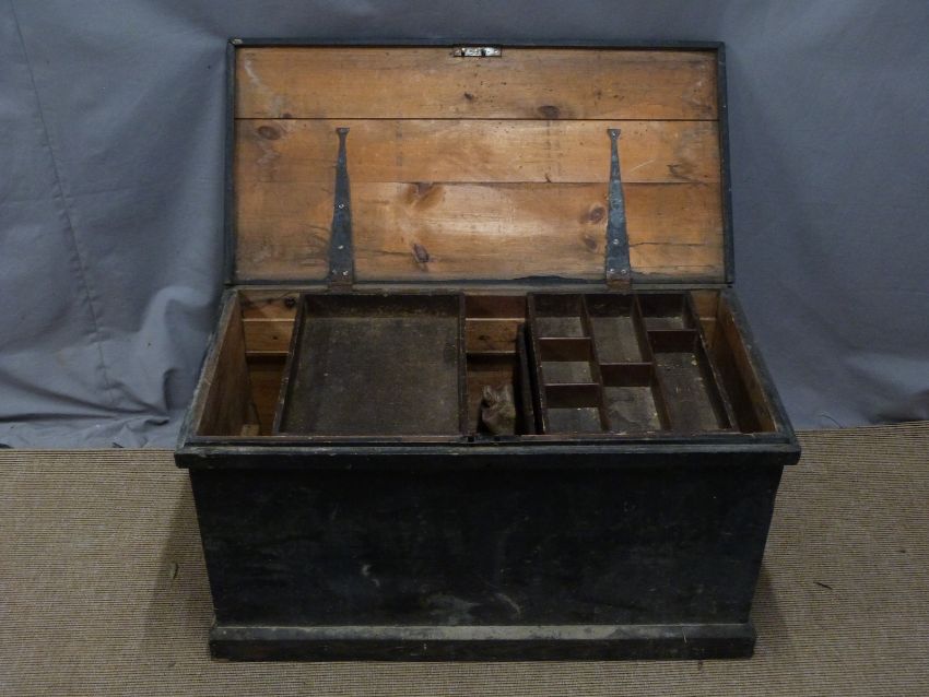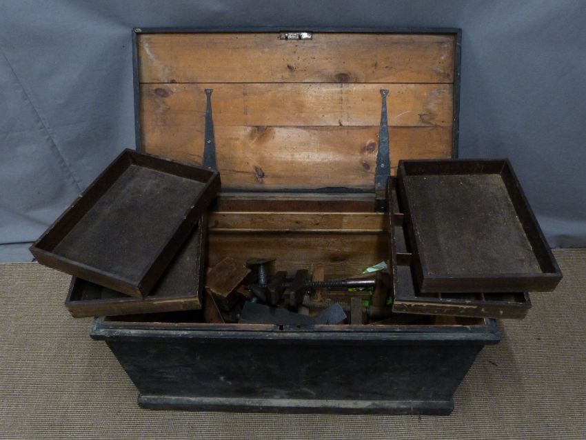 Quantity of vintage woodworking tools in chest, W95 x D48 x H50
