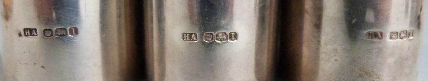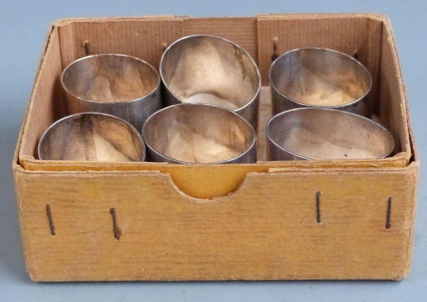 Set of six hallmarked silver napkin rings, Sheffield 1928 maker Atkin Brothers, weight 250g, in John B. Jackson Ltd Southsea box