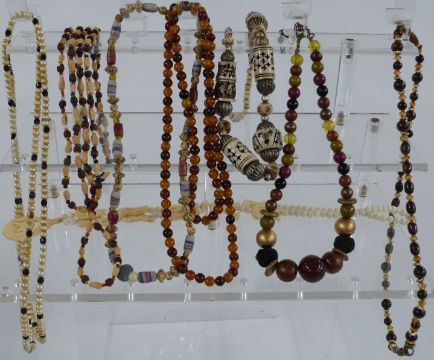 A collection of costume jewellery including necklaces, bangles, a quantity of empty boxes, etc