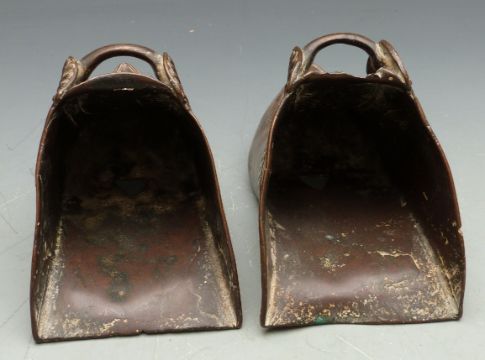 Gaucho Argentinian or Spanish stirrups, with cast brass or similar bodies, length 18cm