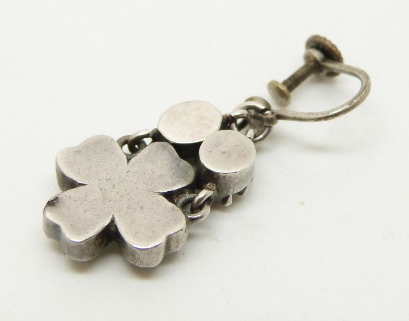 A Georgian silver earring set with seven diamonds in a foiled setting