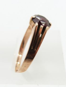 A 9ct gold ring set with a round cut garnet, 1.7g, size M