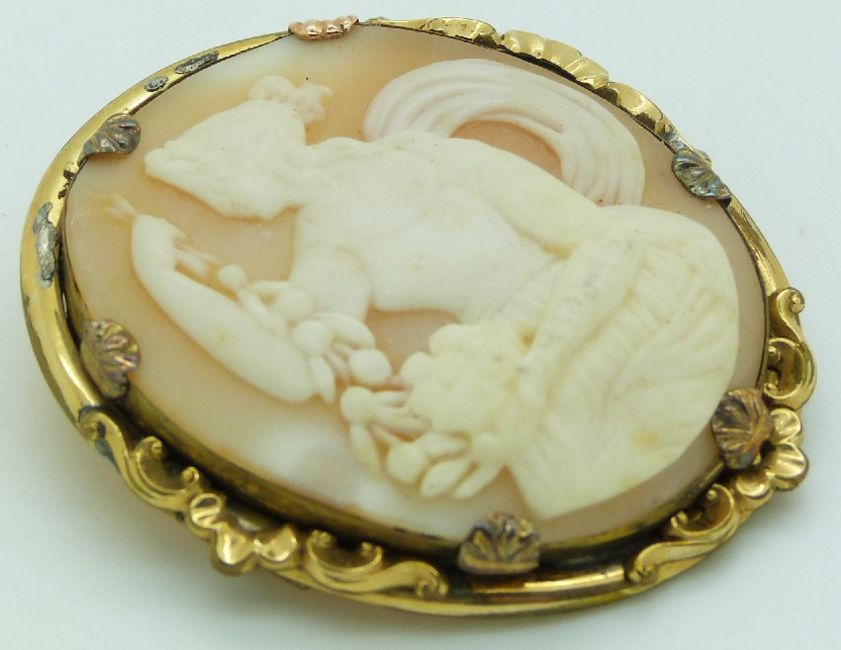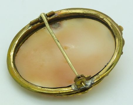 Victorian pinchbeck brooch set with a cameo, 4 x 4.5cm