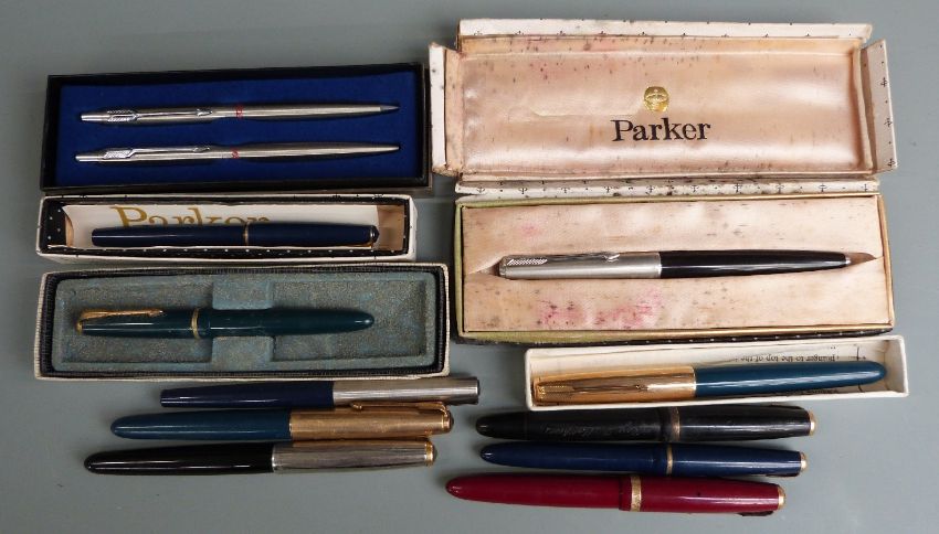 Eleven Parker pens and pen sets including Duofold