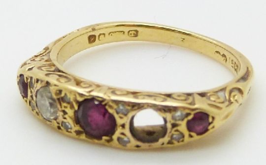 An 18ct gold ring set with rubies and diamonds, 4.0g, size M
