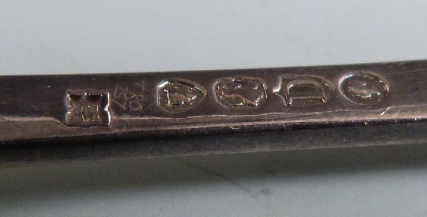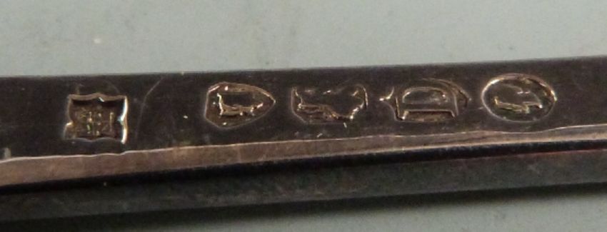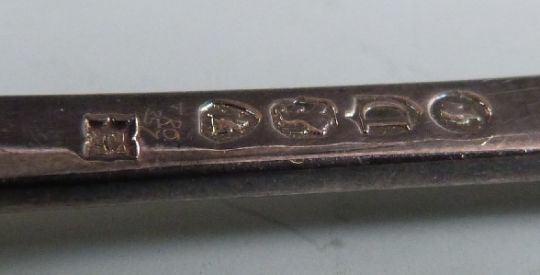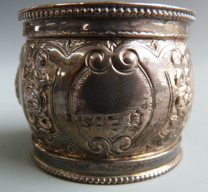 Victorian hallmarked silver spoon and fork christening set, London 1879 maker's mark indistinct, hallmarked silver salt spoon and a hallmarked silver napkin ring, weight 110g