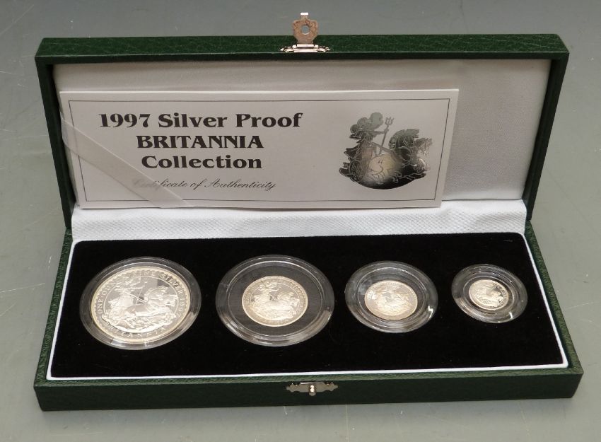 Royal Mint 1997 silver proof Britannia collection comprising four graduated coins with certificates