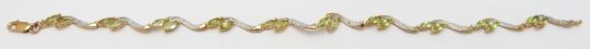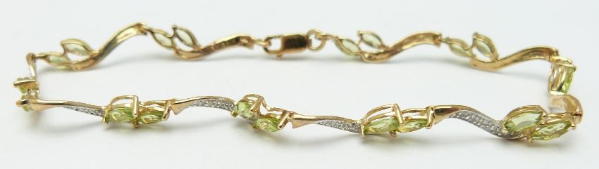 A 9ct gold bracelet set with peridot and diamonds, 4.0g