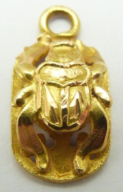 A yellow metal charm in the form of a scarab beetle, 0.4g