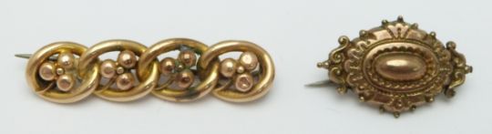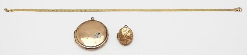 A 9ct gold back and front locket, 9ct gold ring, 9ct gold Victorian brooch, section of a 9ct gold chain (7.6g) etc