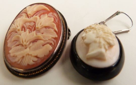 A collection of silver jewellery including earrings, pendants, Victorian brooches, brooches, cameo earrings, Victorian jet brooch, silver bangles, Art Deco necklace etc