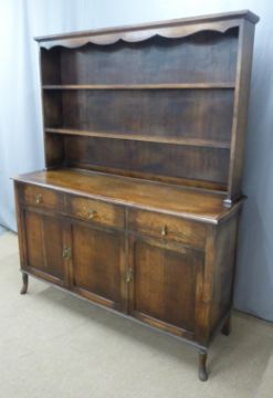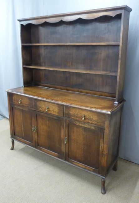 Oak dresser with plate rack above and three drawers with cupboards to base, W153 x D50  x H189cm