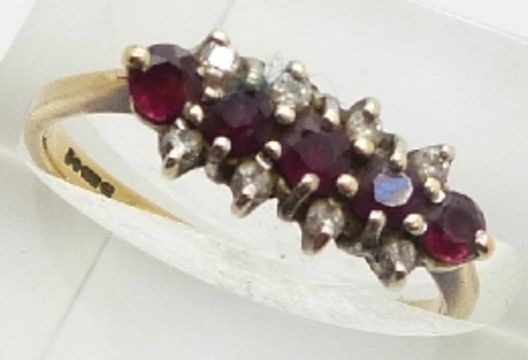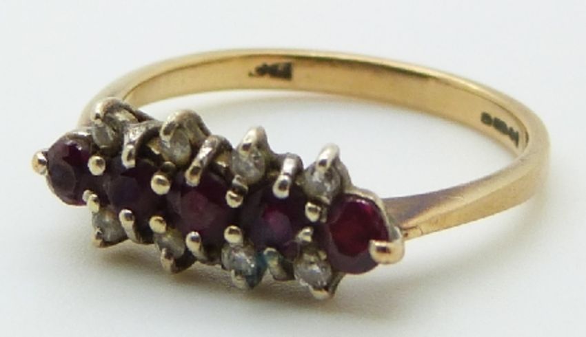 A 9ct gold ring set with rubies and diamonds, 2.1g, size M