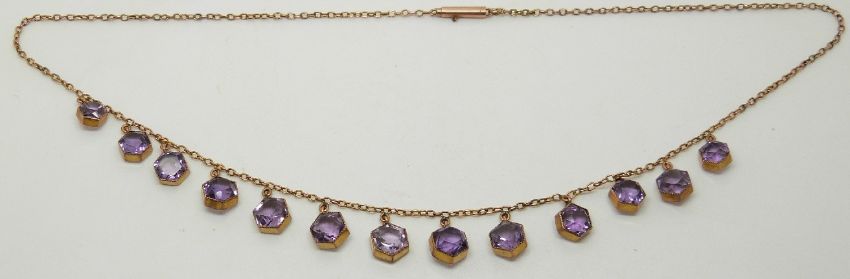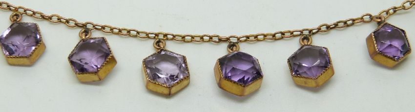 Victorian / Edwardian necklace set with hexagonal amethysts, 9.1g