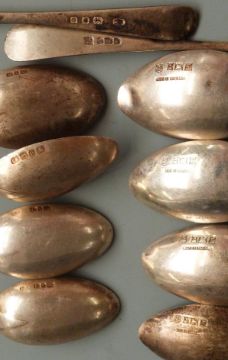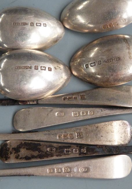 Twenty eight hallmarked silver tea and coffee spoons comprising three sets of 6 and two sets of 5, weight 288g