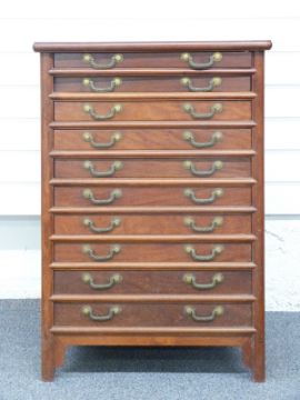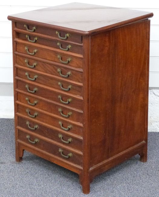 Mahogany collector's chest of ten drawers each set with ornate drop handles, 58 x 54 x 87cm