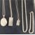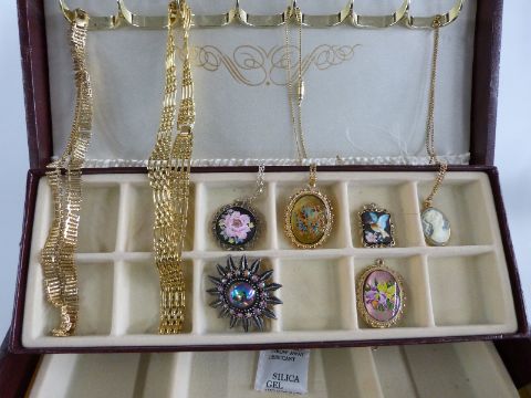 A collection of costume jewellery including 9ct gold earrings, silver locket, silver ingot, chains, silver necklace etc