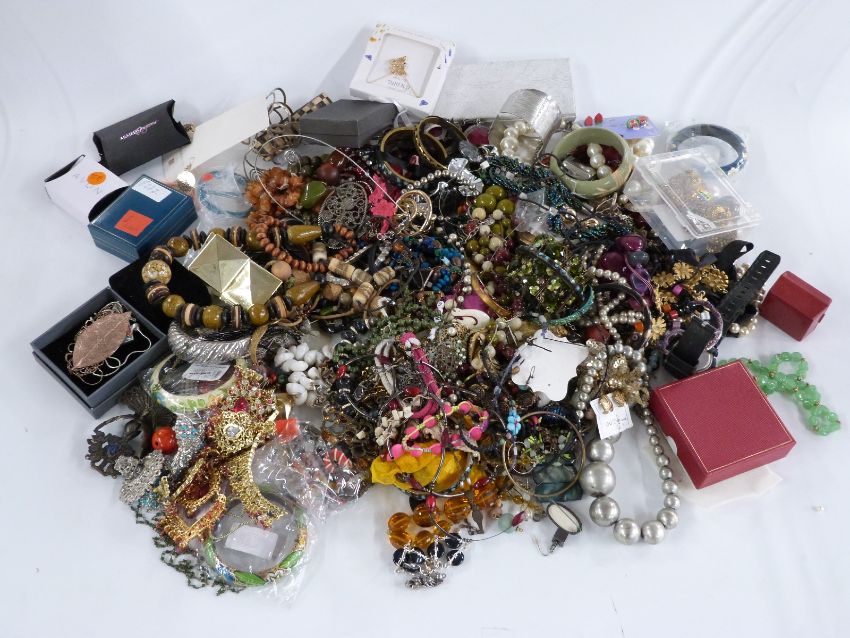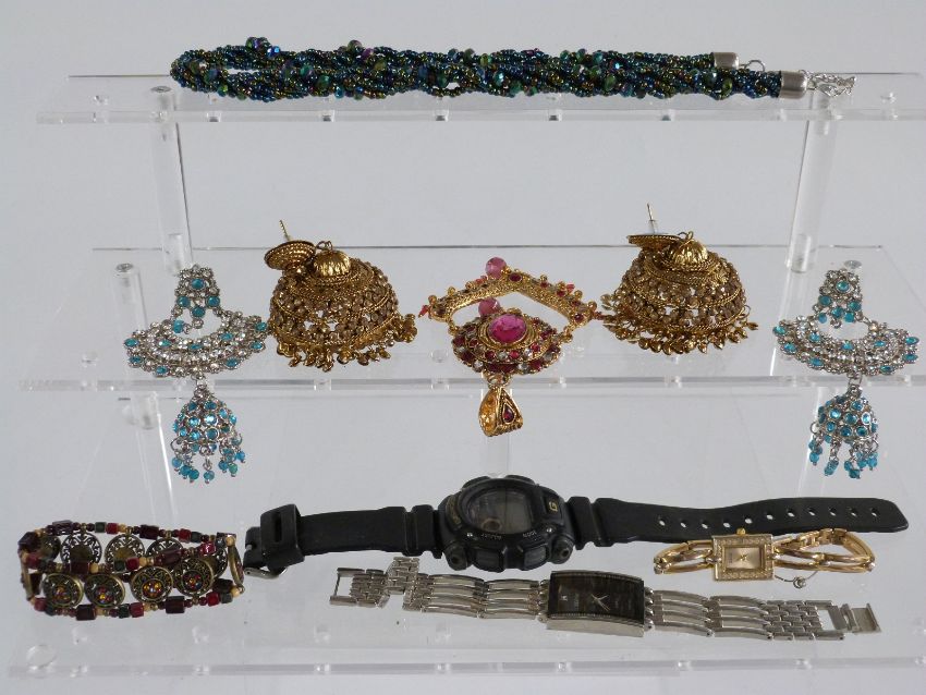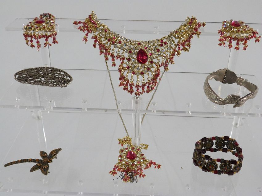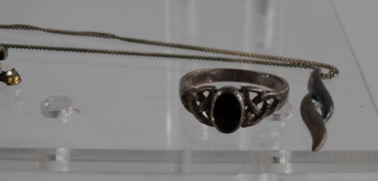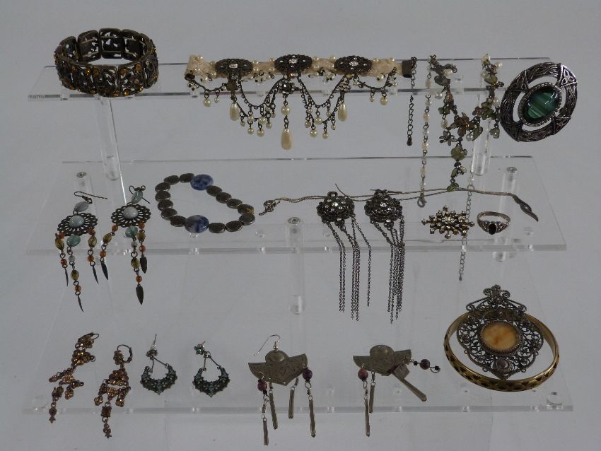 A collection of costume jewellery including 9ct gold necklace, agate necklace, necklaces etc