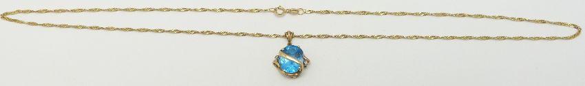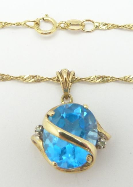 A 9ct gold necklace set with a blue topaz and diamonds, 4.1g