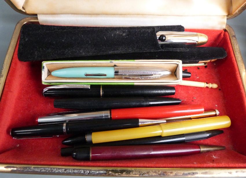 A collection of pens including Waterman