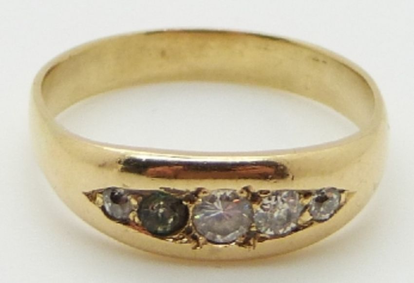 Victorian 18ct gold ring set with diamonds and paste, 4.1g, size R