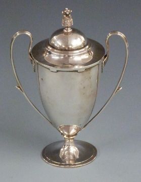 Mappin & Webb George V hallmarked silver twin handled trophy cup, Birmingham 1912, height 22.5cm weight 507g