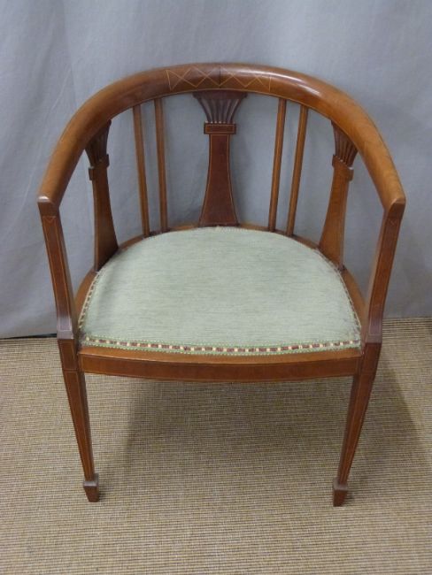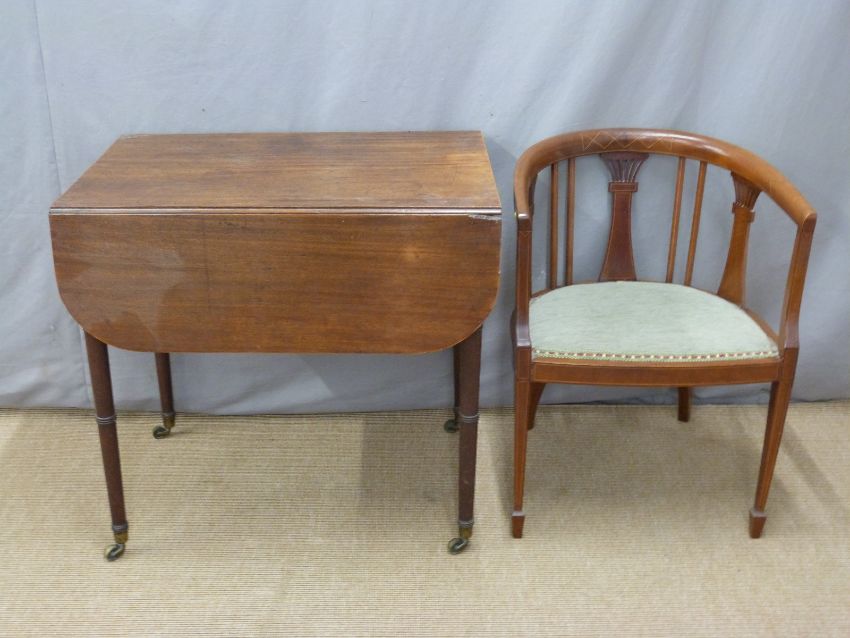 19thC mahogany Pembroke table, length 77cm, and an Edwardian tub chair