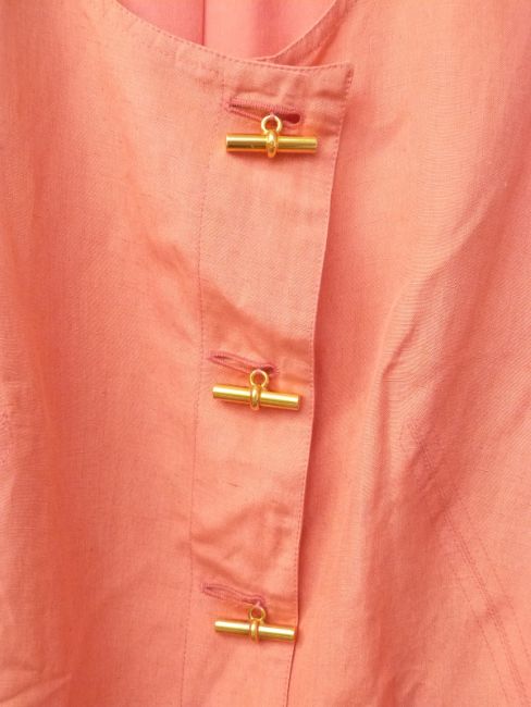 Vintage Hermes Paris silk and linen dress with gold tone buttons, size 44