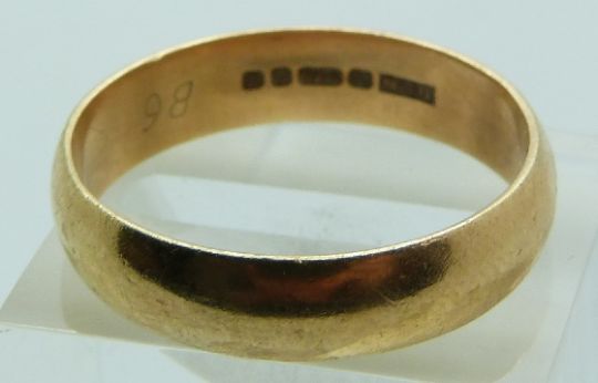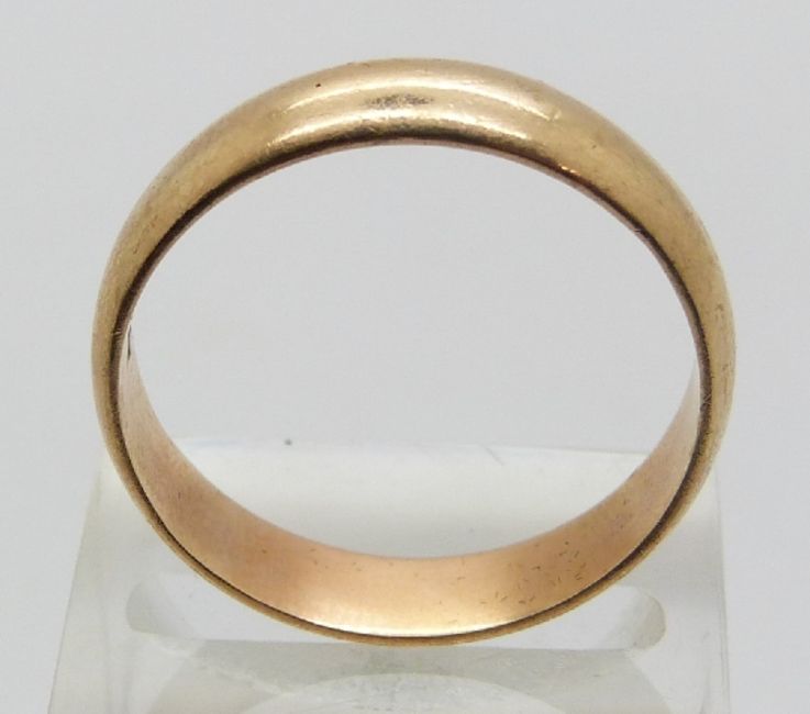 A large 9ct gold ring/ wedding band, size 1, 5.6g.