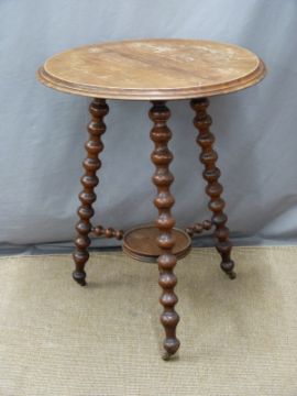 19thC mahogany cricket table with bobbin turned legs united by a small circular shelf, diameter 60cm height 74cm
