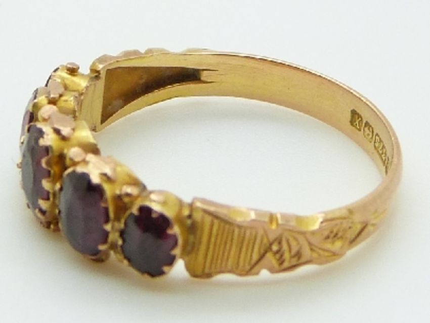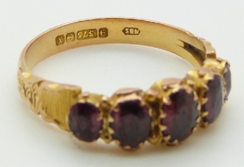 A 9ct gold ring set with garnets, 2.3g, size R