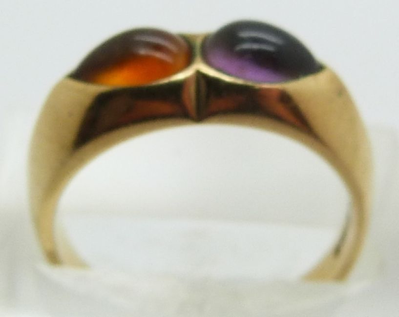 A 9ct gold ring set with citrine and amethyst and a 9ct gold ring, 8.0g
