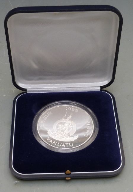 Ripablik Blong Vanuatu 100 Vatu 'oversized' silver coin, 65mm diameter, 156g, cased