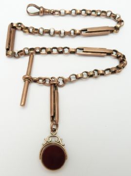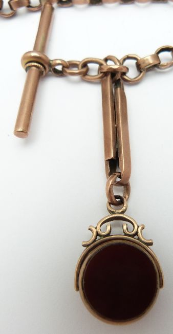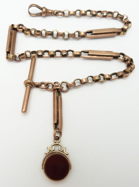 Victorian 9ct rose gold Albert with 9ct gold swivel fob, 21.6g