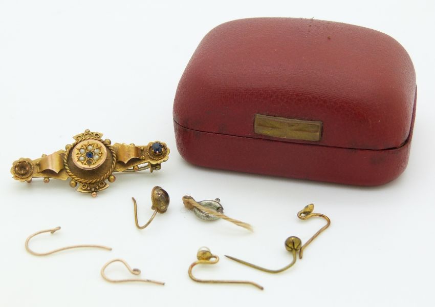 Edwardian brooch set with seed pearls and blue paste, Birmingham 1903