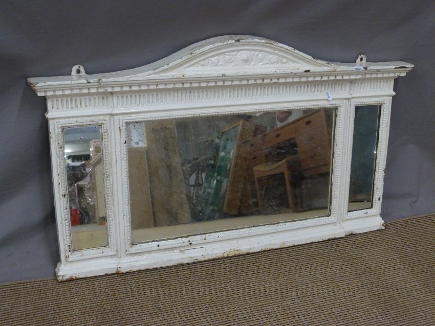 Cast iron Coalbrookdale or similar triptych mirror with floral design and arched top, 87x54cm