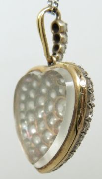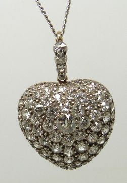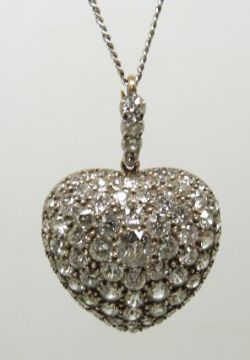 An early 20thC heart pendant / locket set with round cut diamonds, the centre diamond measuring approximately 0.5ct, verso set with bevelled glass, in original Aird & Thomson, Buchanan Street, Glasgow box, 2.8cm