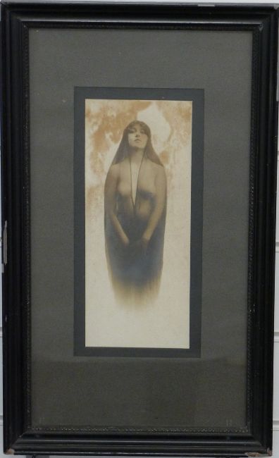 Late 19thC/ early 20thC photograph 'Kaloma', nude portrait originally believed to depict Josephine 'Jessie' Marcus Earp, wife of Wyatt Earp, 27x11cm