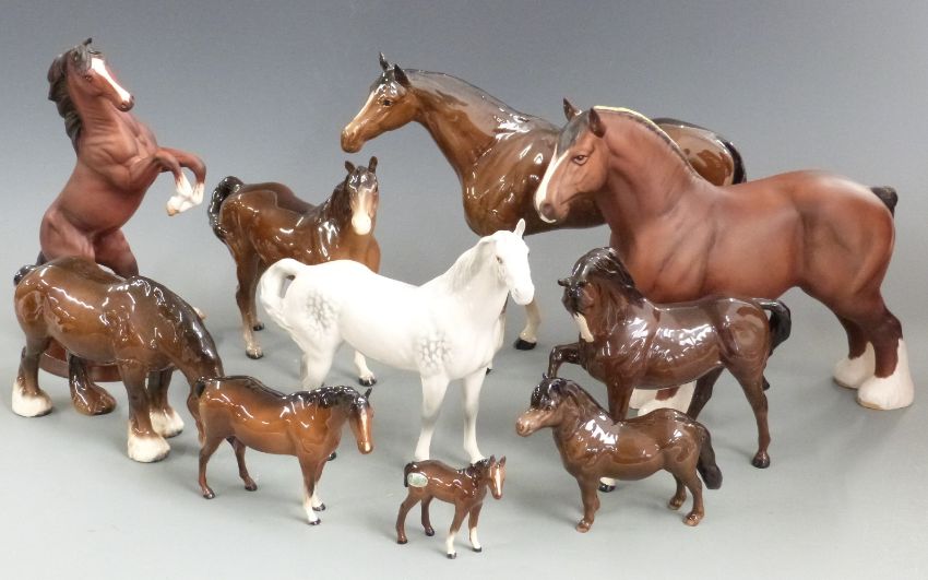 A collection of Beswick horses and foals including Burnham Beauty, tallest 28cm