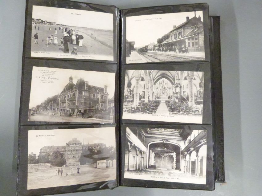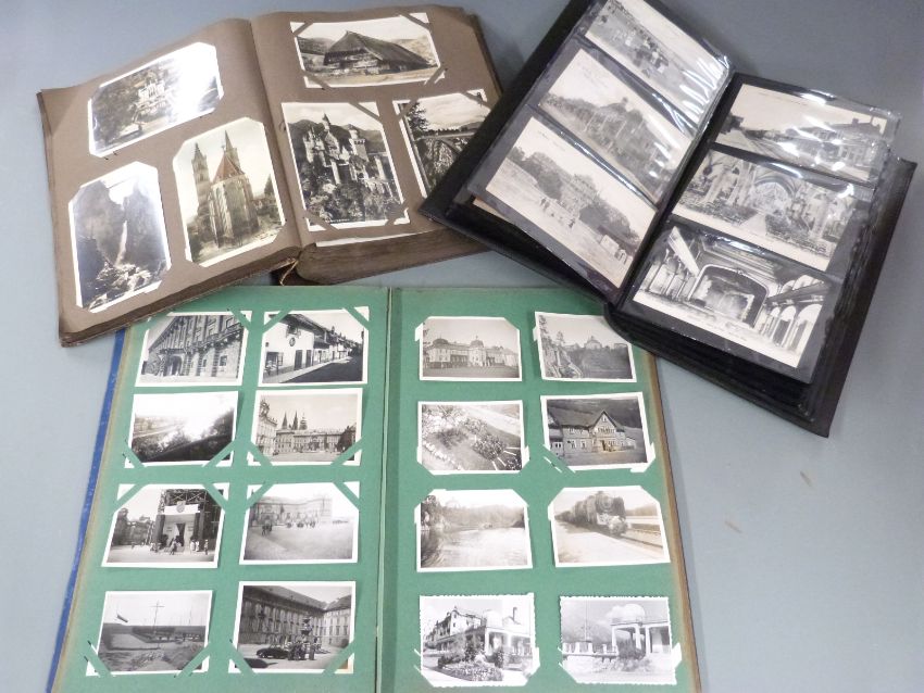 Three postcard and photograph albums containing mainly Continental postcards, early 20thC onwards, including topographical views of Germany, Austria, France, Alpine scenes, Saint-Nazaire, Rotterdam, Leipzig, Antwerp, Bruges, Brussels etc