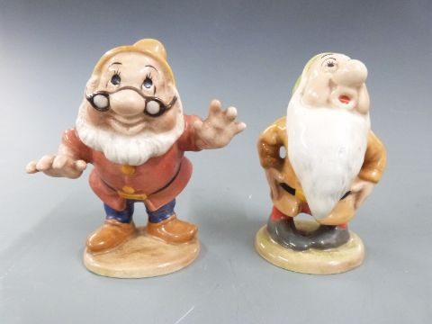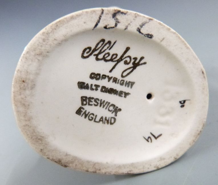 Two Beswick Walt Disney dwarfs from Snow White, Doc and Sleepy, Felia from David Hand's Animaland and Beswick Beatrix Potter Timmy Willie with unusual gold backstamp 'Timmy Willie from Johnny Town-Mouse'