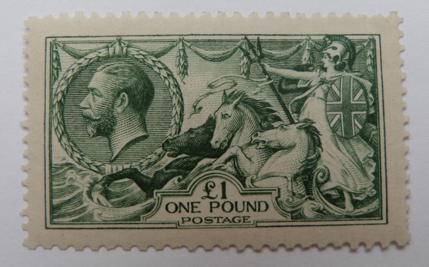 Great Britain 1913 £1 dull blue green Seahorse, well centred mint and very lightly mounted