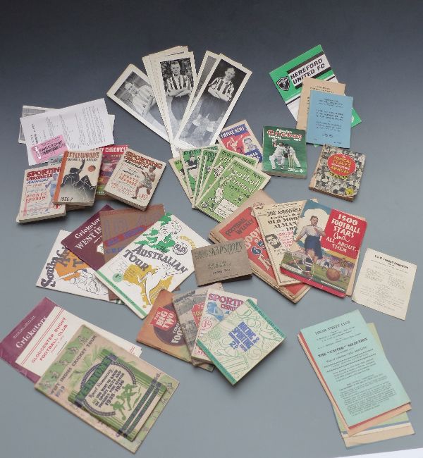 Quantity of 1930s, 1940s and 1950s football ephemera including Empire News, Athletic News, Sunday Chronicle, Littlewoods, Sporting Chronicle, Topical Times and other football annuals, Herefordshire FA rules, similar era cricket tour programmes including West Indies Cricket Tour 1939